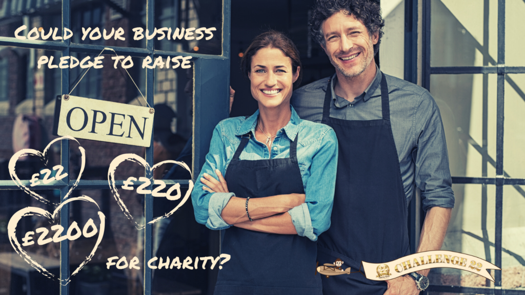 We’re looking for 22 businesses to sign up and pledge to raise £22, £220 or £2200 for our charity! Whether you’d like to donate a one-off pledge, pop collection tins in your shop, donate a percentage of funds from a particular product, hold a dress down day, organise a raffle, cake sale – you name it, you can do it!