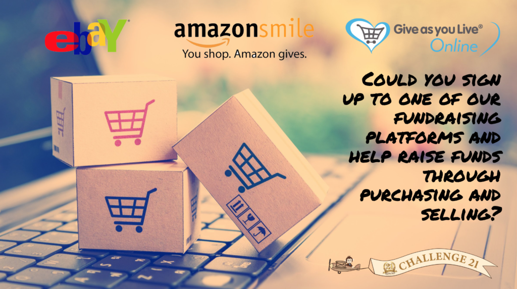 We’re looking for 21 people to sign up to one of our fundraising platforms: AmazonSmile, Give as you Live or Ebay, and help us to raise vital funds whilst doing your shopping, or selling!