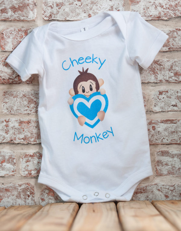 This fabulously cute design will look great on any ‘Cheeky Monkey’ aged from three months to two years.