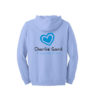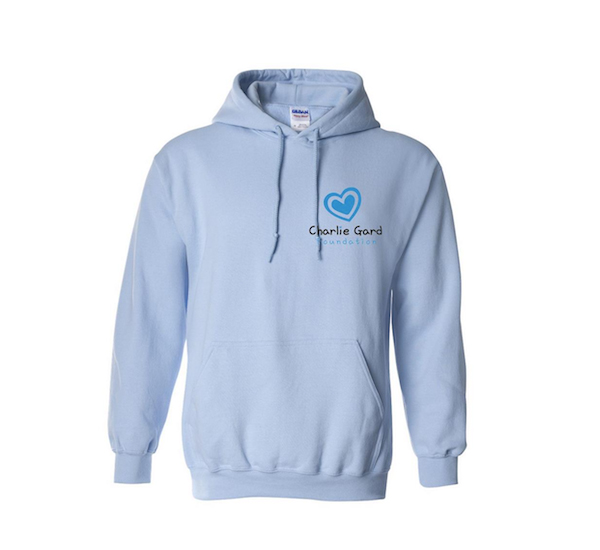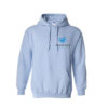 Children’s Light Blue hoodie with foundation logo on the left breast pocket, and full sized logo on the back.