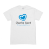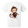 Children’s white cotton t-shirt with large foundation logo on the front, and our iconic monkey on the back.