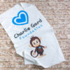 Children’s white sports towel with both the logo and iconic monkey. This soft, fun towel is ideal for swimming, running, gymnastics etc.