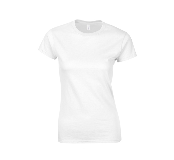 White ladies’ cotton t-shirt with foundation logo on the left breast pocket, and full sized logo on the back. *