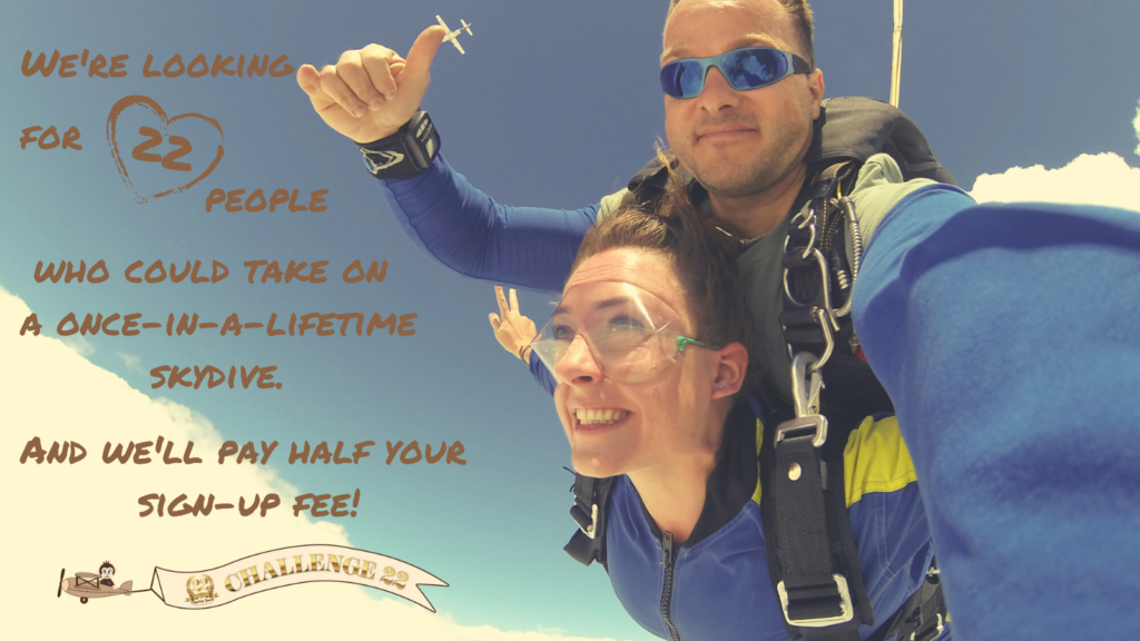 We’re looking for 22 people who would like to take on a once-in-a-lifetime skydive and raise vital funds along the way! Rather than create an event at a specific destination, which can be difficult for people to get to, we’re inviting people to take on this challenge at a local skydiving site to them. This means no matter where you are in the UK you can take part!