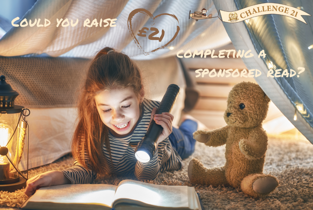 We’re looking for 21 children who would like to take part in a sponsored read! We can send sponsorship forms or help you set up a fundraising page, but all we ask is for children to read as many books as they can in 21 days and see if they can raise £21 for their efforts.